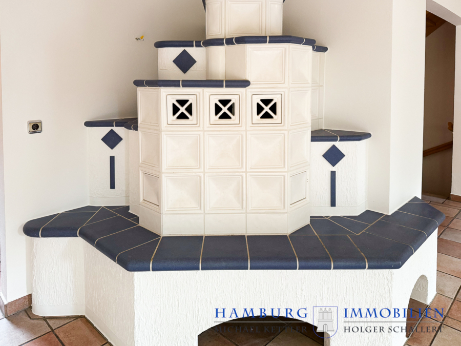 - Großer Kamin-/Kachelofen im Wohnzimmer