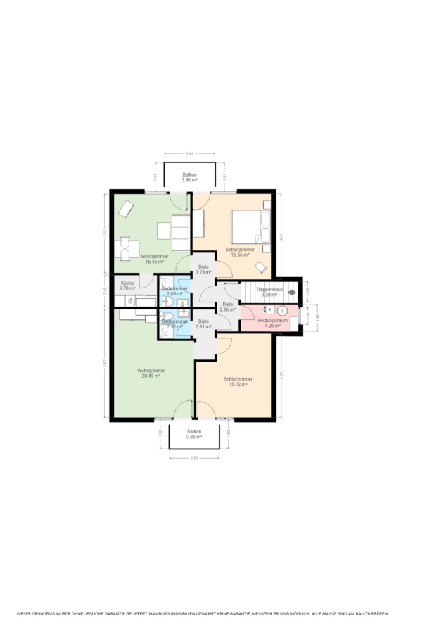 Die oberen Wohnungen haben jeweils einen Balkon der von den beiden Zimmern erreicht werden kann.